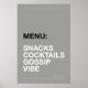 Brighten up your kitchen with humor! “MENU: SNACKS, COCKTAILS, GOSSIP & VIBES” poster in modern typography. Available in multiple color backgrounds, perfect as home decor, gifts, or kitchen wall art.