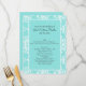 Grand menu de table mariage dans un bleu aqua design, avec cadre bleu aqua et blanc damassé. Le dos est bleu aqua solide, avec un joli coeur blanc et le monogramme du couple. Personnalisez tout le texte pour répondre à vos besoins de réception de mariage. Ajout chic à vos tables de réception.