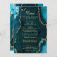 Menu Teal Blue and Gold Agate Marble Wedding