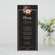 Un automne chic noir moody terre cuite brûlé orange mariage menu dîner automne. Ce qui présente des fleurs de crème beige orangée brûlée et ivoire comme des feuilles de pivoine et de chute.