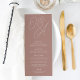 Une belle carte de menu mariage à base de typographie avec vos initiales en écriture de script surdimensionnée en haut, en tonalité sur les tons pour un effet filigrane. Personnalisez avec les éléments de menu ci-dessous. Notre colorway en terre cuite est un élégant mélange de neutrales terreux, avec du lettrage chaud blanc rose taupe sur un arrière - plan en terre cuite.