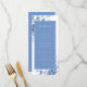 Faites votre journée de mariage de façon unique avec notre menu de dîner floral bleu toile personnalisable avec monogramme. Il s'agit d'un complément parfait à votre papeterie de jour de mariage, ou à votre dîner de répétition, fête de fiançailles, douche nuptiale ou baby shower. Personnalisez votre texte pour un ajout élégant à votre mariage et imprimez facilement avec Zazzle!