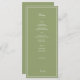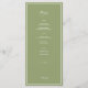 Arrière - plan vert herbacé Tarragon pour un design simple mais élégant basé sur la typographie. Pied de page monogramme du couple. Blanc sur vert moyen herbacé. Renvoie à la couleur verte solide. La carte menu a des polices variées et une ligne simple embellie sous "Menu".