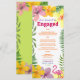 Ajoutez une touche tropicale à votre célébration avec cette carte de menu de fête de fiançailles luau, avec des fleurs d'hibiscus colorées, des fougères luxuriantes et un flamant rose ludique. Entièrement personnalisable avec votre menu d'événement, vos noms et votre date, c'est le détail parfait pour un dîner de fiançailles sur le thème hawaïen, au bord de la plage ou dans votre jardin. Se coordonne avec la suite d'invitation luau complète pour un look cohérent.