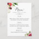 Typographie chic, fleurs d'aquarelle bohème, plumes et feuillage, carte menu mariage avec script dessiné à la main et accents décoratifs.