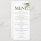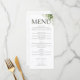 Ce menu de mariage élégant avec typographie florale verdoyante peut être personnalisé avec vos informations et vos initiales monogrammes au verso. Conçu par Thisisnotme©