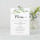Rustic Greenery Branch et Feuille Watercolor Spring Wedding Réception dîner, brunch ou déjeuner menu - comprend une belle et élégante typographie avec une feuille botanique moderne et branche d'arbre pour la célébration spéciale du mercredi.