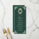 Elégante carte de menu de mariage en vert émeraude avec ornement or baroque fleurit et un monogramme victorien régal en haut. Ce design luxueux offre de l'espace pour présenter vos cours de dîner mariages dans un agencement formel et sophistiqué. Idéalement coordonnée avec la suite de faire-part de mariage baroques vert émeraude et or, idéale pour les couples qui souhaitent organiser une fête classique, élégante et intemporelle.