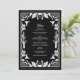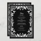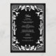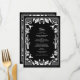Un design moderne de cowboy occidental avec des éléments dessinés à la main d'un crâne de vache, des fers à cheval, des ornements floraux et des cactus. Le mariage à bordure florale noir et blanc est orné de fleurs dessinées à la main, de cactus, de crâne de vache et de fer à cheval. Ce mariage campagnard contemporain moderne de style occidental est idéal pour toutes les saisons. Un élégant ranch noir et blanc, une ferme ou une grange design avec des illustrations dessinées à la main. Un décor de carte de menu mariage à thème Western Country avec des éléments modernes et élégants. Des invitations de mariage et d'autres articles de papeterie sont également disponibles.
