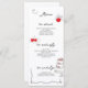 Carte de menu mariage manuscrite avec un dessin à la main et des illustrations sur le thème de la cerise dessinées à la main. Cette carte de menu mariage est disponible en noir, blanc et rouge.