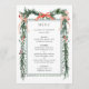 This wedding menu features a watercolor winter greenery garland adorned with pine branches, holly berries, botanical foliage, red ribbon bows, and simple calligraphy. For more advanced customization of this design, please click the BLUE DESIGN TOOL BUTTON above! Matching items are also available.