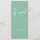 Menus de dîner de mariage au texte gris vert et blanc modernes et simples ou carte de menu de rack d'événement spécial. Modifiez ce menu 4 plats avec vos propres mots. Menu moderne typographique simple et petit cœur blanc. Idéal pour un mariage vert simple ou un événement thématique moderne au cœur. © Conception www.mylittleedenweddings.com sur zazzle.