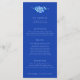 Carte de menu de dîner de mariage ou de menu pour un événement spécial en encre moderne et aquarelle florale en forme de cœur, en bleu et blanc. Modifiez ce menu de 4 plats avec vos propres mots. Conception de menu simple mais moderne en bleu et blanc. Idéal pour un mariage ou un événement sur le thème de l'amour bleu ou du myosotis. © Fleurs de myosotis botaniques originales dans un dessin à l'encre à la main en forme de cœur et aquarelle et design de Sarah Trett exclusivement pour www.mylittleedenweddings.com sur Zazzle.