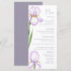 Menus for a modern wedding. Delicate irises in soft lilac shades are depicted against a pastel background, creating an atmosphere of sophistication and tranquillity. The design is modern and airy, perfect for a stylish, romantic wedding.