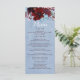 Cartes de menu mariage floral bordeaux et bleu poussiéreux