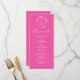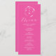Ce élégant menu mariage rose fuchsia présente un simple monogramme encerclé de lignes florales. Le mot "Menu" est défini dans le script de calligraphie. Utilisez les champs modèle pour ajouter les initiales, les noms et les éléments de menu personnalisés de la mariée et du marié. Parfait pour les mariages, les dîners de répétition, les fêtes de fiançailles et plus encore.
