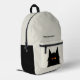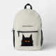 This backpack has a simplistic design with black & beige dominant colours and a spooky orange eyed black cat. You can customize the text.