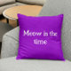 Meow Is The Time Funny Retro Animal Cute Purple Throw Pillow