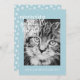 Festive cat theme Christmas holiday card with the text meowing spirits bright in elegant script calligraphy and your holiday wishes in stylish modern typography. Simply add your text and upload your favourite photo of your cat. The back of the card has a snowflake pattern on a pastel blue background. Exclusively designed for you by Happy Dolphin Studio. If you need any help or matching products, please contact us at happydolphinstudio@outlook.com.