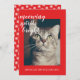 Festive cat theme Christmas holiday card with the text meowing spirits bright in elegant script calligraphy and your holiday wishes in stylish modern typography. Simply add your text and upload your favourite photo of your cat. The back of the card has a snowflake pattern on a bright red background. Exclusively designed for you by Happy Dolphin Studio. If you need any help or matching products, please contact us at happydolphinstudio@outlook.com.