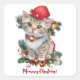 The design of the Christmas sticker features a charming, fluffy kitten at the centre. The kitten is depicted with wide, innocent eyes and a tiny pink nose, its fur a mix of white and soft grey. It is wearing a festive traditional red Christmas hat, making the kitten look even more endearing.