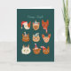 Cute Christmas greeting card featuring a hand drawn illustration of various cats wearing holiday costumes. The text says "meowy + bright."