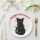 Meowy cat Christmas red green twinkle lights Paper Plate