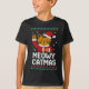 Cute festive cat in knitted look with Santa outfit and winter snow details. Perfect for holiday humor fans who enjoy cozy seasonal themes.
