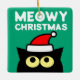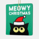 Meowy Christmas tree ornament for cat lovers and pet owners. Cute kitty and humourous Holiday quote. Fun gift idea for animal lover, cat owner, cat person, crazy cat lady, pet lover etc. Green or custom background colour. Funny black cat cartoon with big yellow eyes and Santa hat. Square shape ornament with string. Fun decorations.