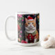 A royal cat wearing a santa Claus costume with a floral background , vintage design