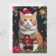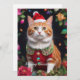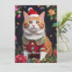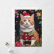 A royal cat wearing a santa Claus costume with a floral background , vintage design