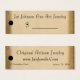 Need some price tags for items in your shop or an upcoming show or event? These elegant golden tags will fit the bill! Totally customizable with your business name, website address, and street address. Black circle indicates where you should punch with a hole punch - punch it out and slip a ribbon or string through the end to attach the tags to your merchandise. Hand write your prices where indicated on the front of the tag, or customize the tags with prices already on them here - your choice. Leave the tags on the merchandise and your customer walks out with a mini business card, directing them on how to find you again!