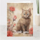Un chaton à table, aux yeux bleus saisissants, est assis à côté de deux roses roses sur un fond de script vintage et de taches d'encre. Les tons sépia donnent une touche d'antiquité chaleureuse à la composition, qui combine des fleurs et un sujet animal mignon.