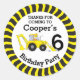 Anniversaire merci d'être venu construction thème de construction autocollants d'anniversaire pour les enfants. Personnalisez avec votre propre nom et votre âge, lit Actuellement Merci d'être venu à Cooper's Birthday party 6. Art et design par Sarah Trett.