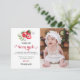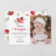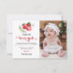 Joli carte de remerciements d'anniversaire aux fraises, avec des illustrations d'aquarelle de fraises rouges juteuses, verdure et fleurs blanches. L'élégante police de script de calligraphie dit - "Merci 'Berry Many'". Ajoutez simplement une photo de votre choix et customisez le message de remerciement et le nom.