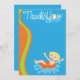 Ce carte de remerciements mignon de fête d'anniversaire de réception au bord de la piscine comporte un petit garçon avec les cheveux blonds éclaboussant dans une chambre à air sur un arrière - plan de l'eau bleue. Complètement personnalisable.