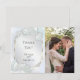 Ajoutez votre Photo - Un fond luminescent bleu givré scintillant avec des feuilles de rose lumineuses, des feuilles d'eucalyptus, de la respiration de bébé et des scintillements étincelants. Le verso est d'une couleur coordonnée complémentaire. Ce design est particulièrement beau sur le papier Pearl Shimmer. Personnalisez le texte, le style de police, la couleur et la taille. Nous avons créé ce modèle pour vous permettre de le personnaliser facilement avec vos propres informations. Cela fait partie d'une suite complète de papeterie de mariage avec de la papeterie assortie pour le mariage, la baby shower et d'autres événements. Œuvre d'art originale © par WhimsicalArtwork™.