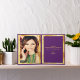 Une couleur arrière - plan chic et violet ceinturée et un cadre en faux or. Avec une pluie de confettis dorés. Devant un script de style écrit à la main et le texte : Merci! et un décor floral faux or. À l'intérieur : Modèle pour Votre note de remerciement et nom/nom. Modèle pour Votre photo. Retour : Modèle pour votre 2ème photo.