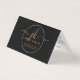 Carte de boîtier pliée pour Merci client Black Gold pour Monogramme d'entreprise. Elégante carte de remerciement d'affaires avec logo professionnel monogramme dans un script de calligraphie avec des swashes et vos coordonnées ou tout autre texte personnalisé dans votre choix de toutes les couleurs (en or sur noir) sur le devant et votre message client sur le dos. MODIFICATIONS : Modifiez le style de police de texte, la couleur, la taille, l'espacement et le placement ou la couleur du cadre arrière - plan et circulaire dans EDIT pour coordonner avec votre marque. ASSISTANCE : Pour obtenir de l'aide sur la modification ou la personnalisation de la conception ou pour coordonner des éléments, contactez le concepteur AVANT LA COMMANDE via l'onglet MESSAGE Conversation Zazzle ou envoyez un courriel à makeitaboutyoustore@gmail.com.