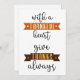 Carte de voeux d'action de grâce avec des mots "avec un coeur reconnaissant de remercier toujours". Ajoutez votre propre message à l'arrière.