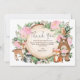 carte de remerciements fantaisiste illustrant l'aquarelle rustique, les jolies fleurs roses rousses et les adorables animaux de la forêt : renard, ours, cerf, raton laveur, chouette