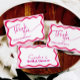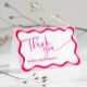 Avec cette carte de remerciements de Fête des mariées vous avez une belle façon de dire merci pour tous les cadeaux et les souhaits pour la future mariée. Il est conçu pour une fête Hen ou une Fête des mariées colorée moderne avec un design de bordure ondulée rose chaud. Invitation correspondante, cartes de boîtier et panneaux sont également disponibles dans cette collection.