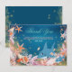 Remerciez vos invités d'avoir célébré avec vous avec cette carte de remerciement d'anniversaire pour enfants sur le thème Sous la mer. Caractérisée par un grand requin, un bébé requin, des poissons rouges, des coquillages à l'aquarelle, des étoiles de mer, du corail et du sable doré scintillant. Parfait pour les thèmes tropicaux, de plage et nautiques et côtiers. Vous pouvez facilement la personnaliser, il suffit de remplacer le texte exemple par le vôtre dans les champs désignés. Les requins sont illustrés par Tommy Moreno.