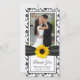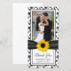 Le texte et la photo mariage sur ce tournesol jaune ruban noir et blanc et floral mariage damassé merci cartes photos sont entièrement personnalisables. Vous pouvez modifier les deux à l'aide des options de personnalisation. Pour effectuer des modifications plus importantes de la carte, notamment en modifiant la police, la couleur de police, la taille de police, le placement du texte, la taille de la photo ou le placement de la photo, choisissez l'option customiser. Il s'agit d'un grand carte de remerciements pour un été de mariage automne/automne avec un thème de tournesol jaune, noir et blanc. Joli, lumineux et gai. Cette carte est actuellement customisée pour un mariage, mais fonctionnerait aussi bien pour toute autre occasion spéciale. Tout ce que vous avez à faire est de changer le libellé.