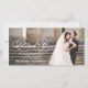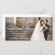 Envoyer votre message de remerciement à vos invités mariages en utilisant cet élégant mariage de script merci carte photo avec élégant script blanc, design horizontal. Elke Clarke© Ajoutez vos noms mariés, message de remerciement pour vos invités et photo mariage. C'est une façon parfaite d'envoyer vos cartes de remerciements à vos jeunes mariés.