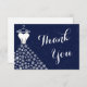 Ces l'appartement vous remercient carde la caractéristique une robe de mariage avec un thème de flocon de neige de saison de Noël de vacances d'hiver. La robe débordante est composée des flocons de neige. L'arrière - plan est un bleu marine élégant formel avec une conception florale de filigrane. Personnalisez ce carte de remerciements assez nuptiale de douche sur le dos. Ces belles cartes de voeux sont parfaites pour des mariages en novembre, décembre, janvier et février. J'ai cette conception disponible dans une série de modèles de couleurs. Si vous ne trouvez pas ce que vous recherchez juste le message je.