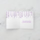 Envoyez un grand merci avec cette carte tendance. Une rangée de lumières scintillantes accrochées au dessus de cette carte violette brillante avec du texte customisé en dessous. Ajoutez du texte customisé à l'intérieur ou supprimez-le simplement pour le laisser vide pour écrire votre propre message. Disponible en couleurs alternatives avec des produits correspondants.