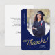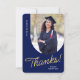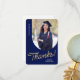 Ce carte de remerciements plat est doté d'une photo verticale avec une arête voûtée. Personnalisez ce carte de remerciements bleu marine et or avec votre propre message ou utilisez celui montré.