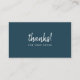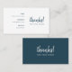 Simple et élégant merci d'insérer le design de carte dans la typographie moderne avec une élégante police manuscrite. Le design épuré et minimaliste est élégant et présente une palette de couleurs bleu marine sombre. Tous les champs peuvent être facilement personnalisés pour un design unique et professionnel pour aider à encourager les entreprises répétitives et accroître la fidélité des clients! Vous avez besoin d'aide ? N'hésitez pas à me contacter en utilisant le bouton de message et je serai heureux de vous aider.