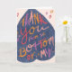 Dites merci avec cette carte de voeux illustrée à la main unique et drôle. Cette drôle de carte de voeux pliée présente un texte amusant et coloré en lettres sur un coeur en denim-couleur à l'envers et dit "Merci du fond de ma..." "Butt. C'est la plus grande partie de moi."